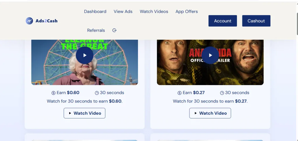 In essence, it’s an affiliate-style ad network where your views fuel brand exposure, but unlike established players like Swagbucks, Ads2Cash feels like a fresh (or rushed) entrant with recycled tactics from scam-prone predecessors.