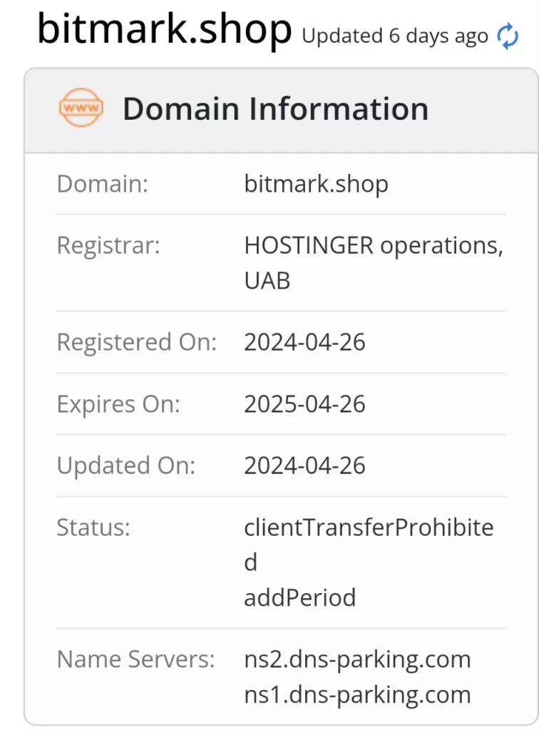 Red Flag Alert: Bitmark.shop’s Shady Domain History