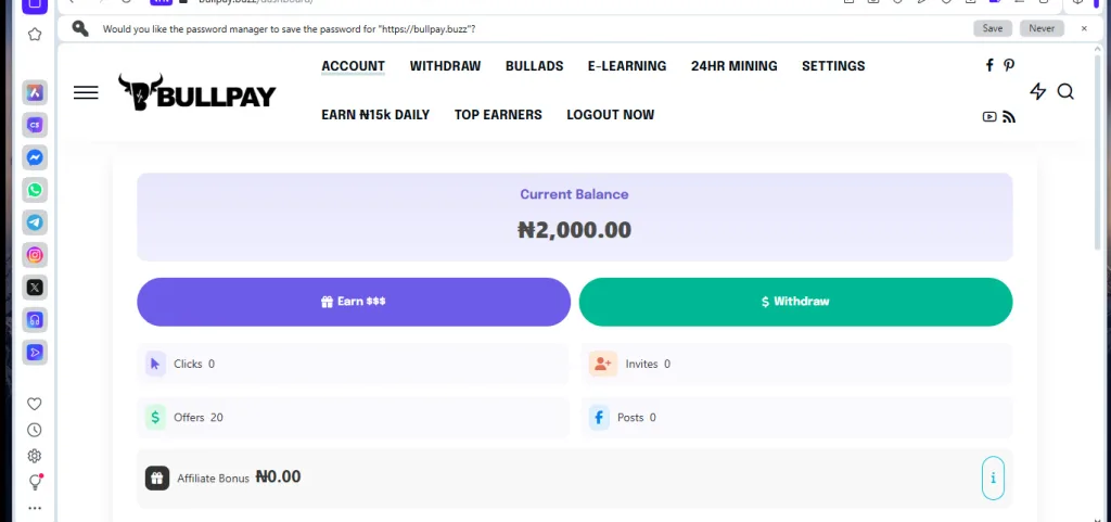 According to Bullpay.buzz’s claims, users can earn up to ₦5,500 daily by performing a set of routine tasks. They also promote enticing success stories from supposed users earning hundreds of thousands of naira within a short period.