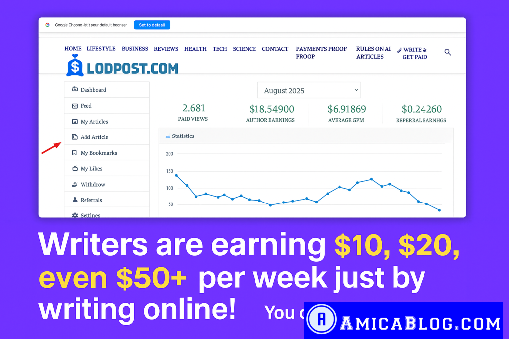 • Platform: Lodpost is a trustworthy income platform for unique content writers.