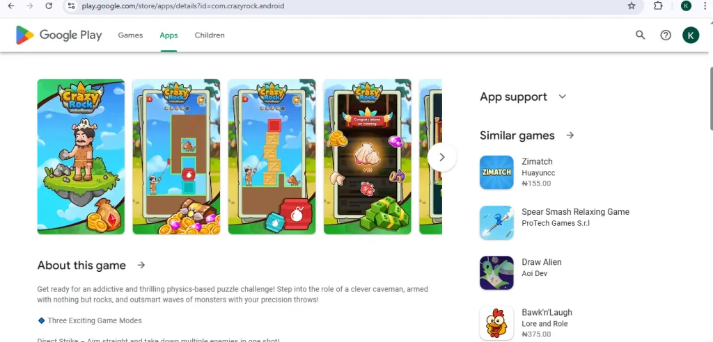 Crazy Rock is a mobile game available on Android that combines a physics-based slingshot puzzle with a ‘Play & Earn Rewards’ system. This review breaks down what the game is, how it works, user experiences, and potential red flags.