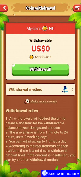 • Withdrawal Method: PayPal is shown as an available method.