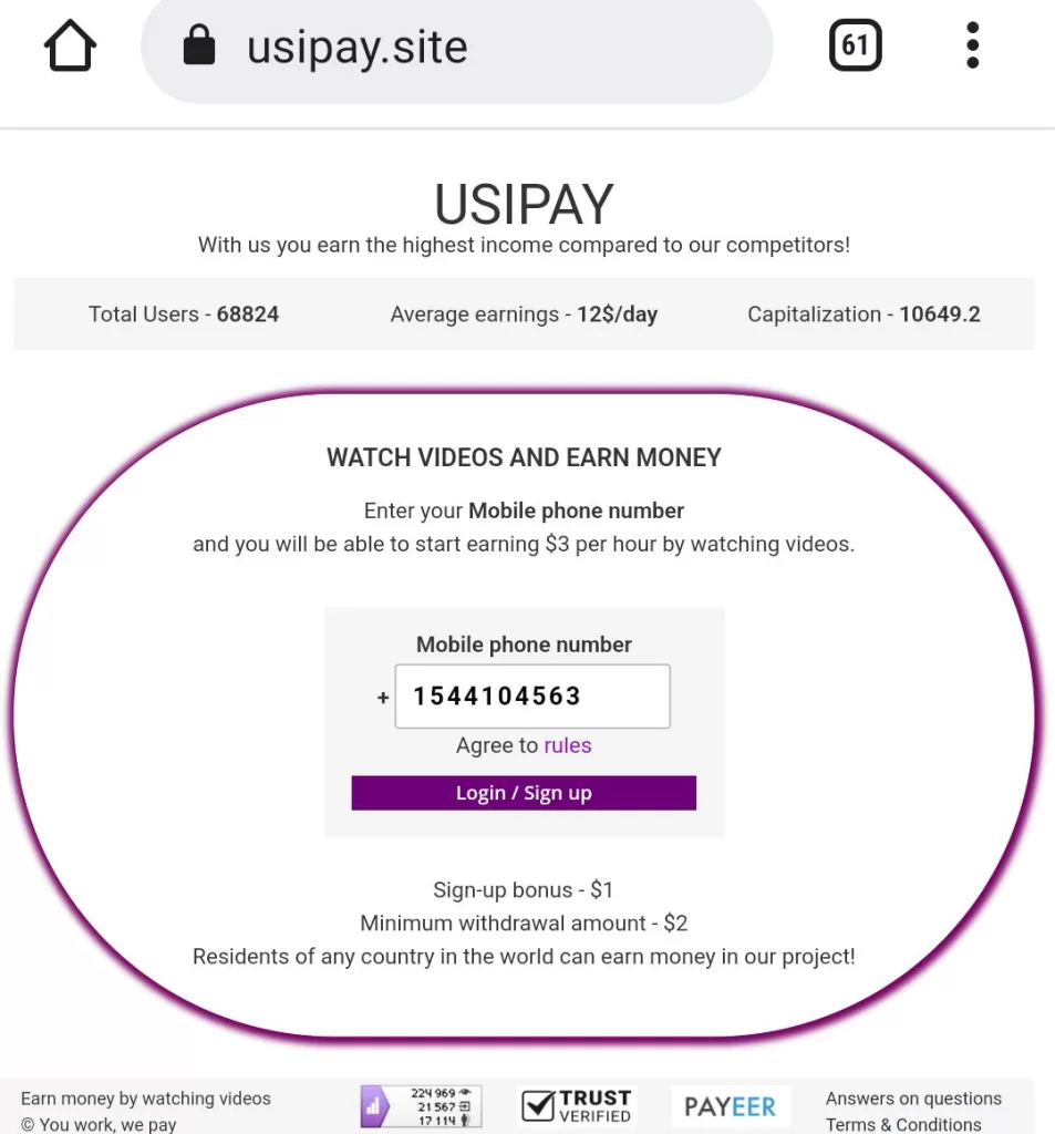 Before we begin: This guide outlines the registration and login process for Usipay.site solely for informational purposes. It is crucial to understand that Usipay.site exhibits numerous red flags and potential scam concerns, including unrealistic earning claims, lack of transparency, and user reports of difficulties withdrawing funds. Proceed with extreme caution and thorough research before engaging with this platform.