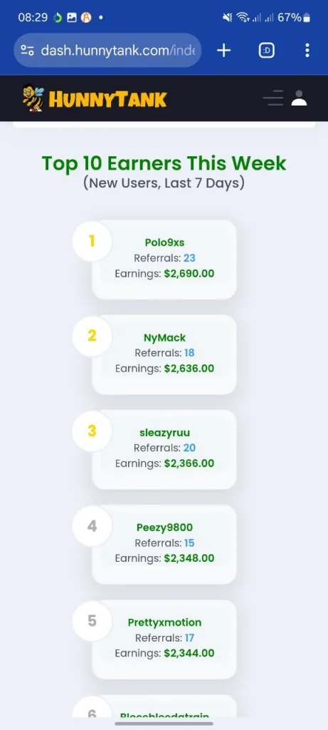 Welcome to our in-depth review of Hunnytank.com. You’ve likely seen flashy social media posts promising a free $100 sign-up bonus and daily earnings of up to $5,000. Hunnytank presents itself as a global platform where users can earn money by playing games, completing offers, and, most importantly, referring others.