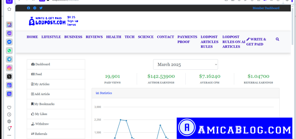 Lodpost is a trustworthy income platform for content writers. You can sign up for free and access a dashboard to track your daily earnings, which are based on the number of valid reads your articles receive. The platform is transparent about its revenue from advertising, ensuring a sustainable model.