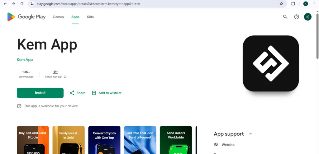 Getting Kem App up and running was a breeze—no sketchy sideloading required. Head over to the Google Play Store and search for “Kem App” (it’s listed under Finance). The download link is https://kemapp.io/download-kem if you want to jump straight in.