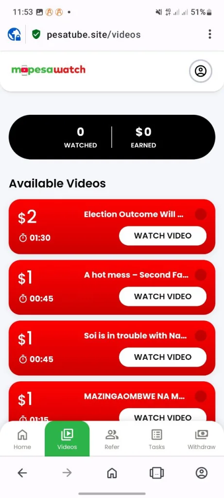 1. Unrealistic Earning Rates: The claim of earning over R400 for watching just four videos is the first and most glaring red flag. Legitimate “get-paid-to-watch” sites, which derive revenue from advertisers, pay users a tiny fraction of a cent per video view. Pasetube’s rates are mathematically impossible and unsustainable, designed solely to create a powerful illusion of high income.
