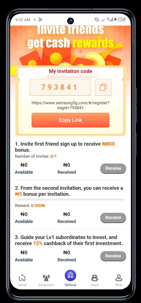 7. Unrealistic Promises: Samsung5G.com promotes its investment packages with promises of significant daily returns and multi-level commission structures. These promises may be unrealistic and could be a tactic to attract gullible investors.