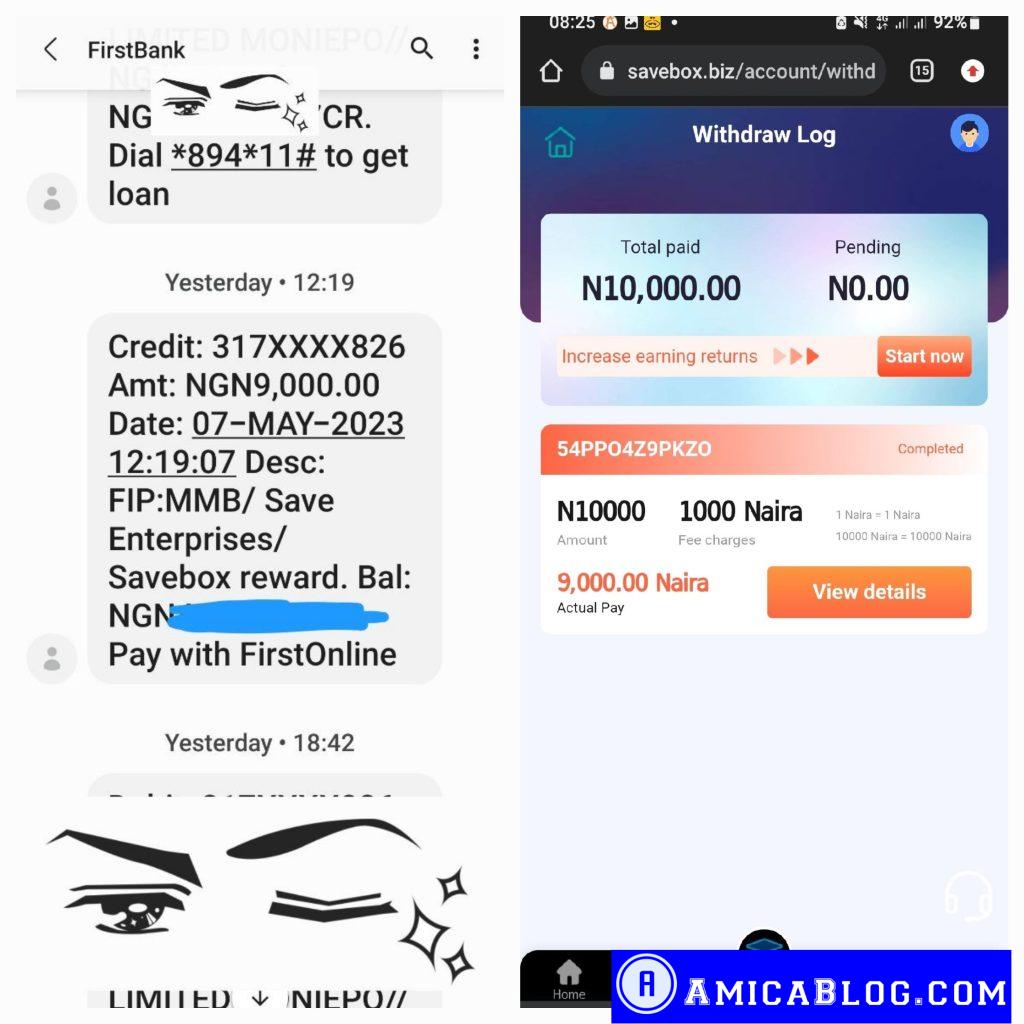 I referred some users to SaveBox.biz and was able to withdraw 9000 naira as a payment proof. It’s important to note that SaveBox is an investment platform, but I was also able to earn upto 10,000 naira through referrals without any investment. This serves as proof that SaveBox is a legitimate platform for now, to those interested in investing and earning a passive income. It’s always important to do your own research and understand the risks involved before investing in any platform.It is also worth mentioning that while referral programs can be a great way to earn additional income, they should not be relied upon as the sole source of earnings. Referral bonuses are often subject to conditions, such as the referred user making a certain amount of investments, and may not always be available.Overall, the payment proof report on Savebox.biz is a positive development for the platform and may provide reassurance to users who are considering investing. However, users should still exercise caution and conduct a well detailed research in any investment opportunity before making a decision.