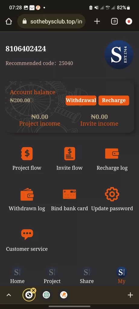 1. Referral Bonus: New users who successfully register on Sothebysclub.top through a referral link or code are eligible for a referral bonus. As of the platform’s information, this bonus is set at 200 Naira.