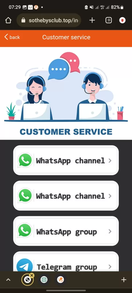 Sothebysclub.top relies solely on Telegram for customer support. While Telegram can be a legitimate means of communication, it is not a substitute for more traditional forms of customer support, such as email or phone contact. Depending solely on a messaging app for support can be a sign of unprofessionalism or a lack of infrastructure.