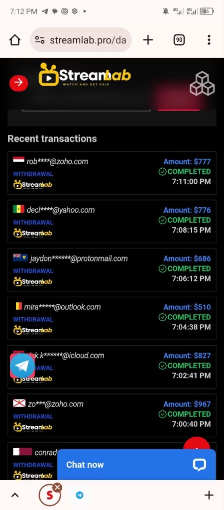 StreamLab.pro claims to pay users, but there’s a lack of concrete evidence to support these claims. Screenshots posted on their Telegram channel could be easily fabricated. Legitimate platforms typically showcase user testimonials and verified payment proofs to build trust. The absence of such evidence on StreamLab.pro is concerning.