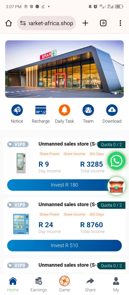 Supermarket-Investment, also accessible through supermarket-africa.shop, has recently emerged as an investment platform promising high returns through “unmanned sales stores” and “convenience stores.” While the platform presents a tempting opportunity, a closer look reveals significant red flags suggesting it might be a scam.